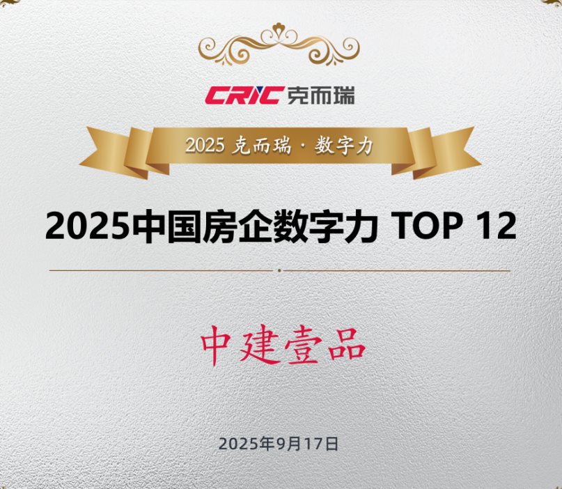 赞!中建壹品荣膺“2025中国房企数字力TOP12”