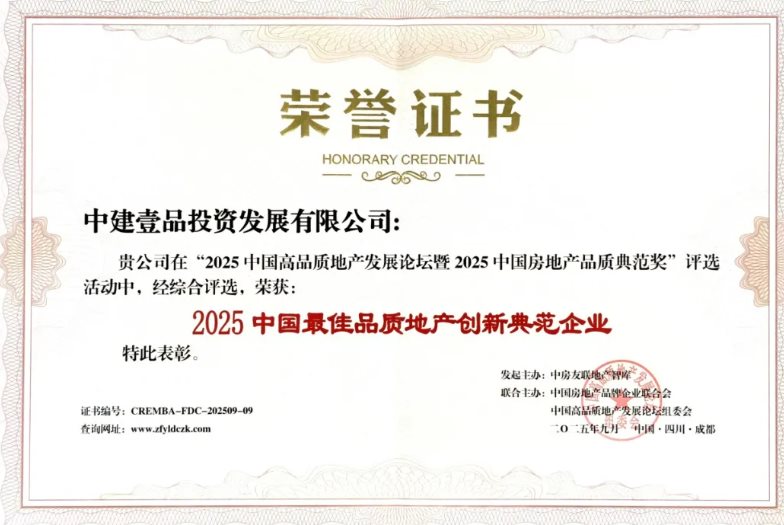 点赞!中建壹品获“2025最佳品质地产创新典范企业”等多项荣誉